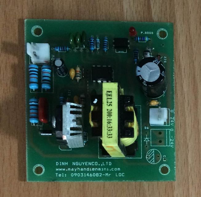 Bo mạch chạy bằng chip chuyên dùng PWM UC3843. Chất lượng điện áp ra ổn định, chính xác.